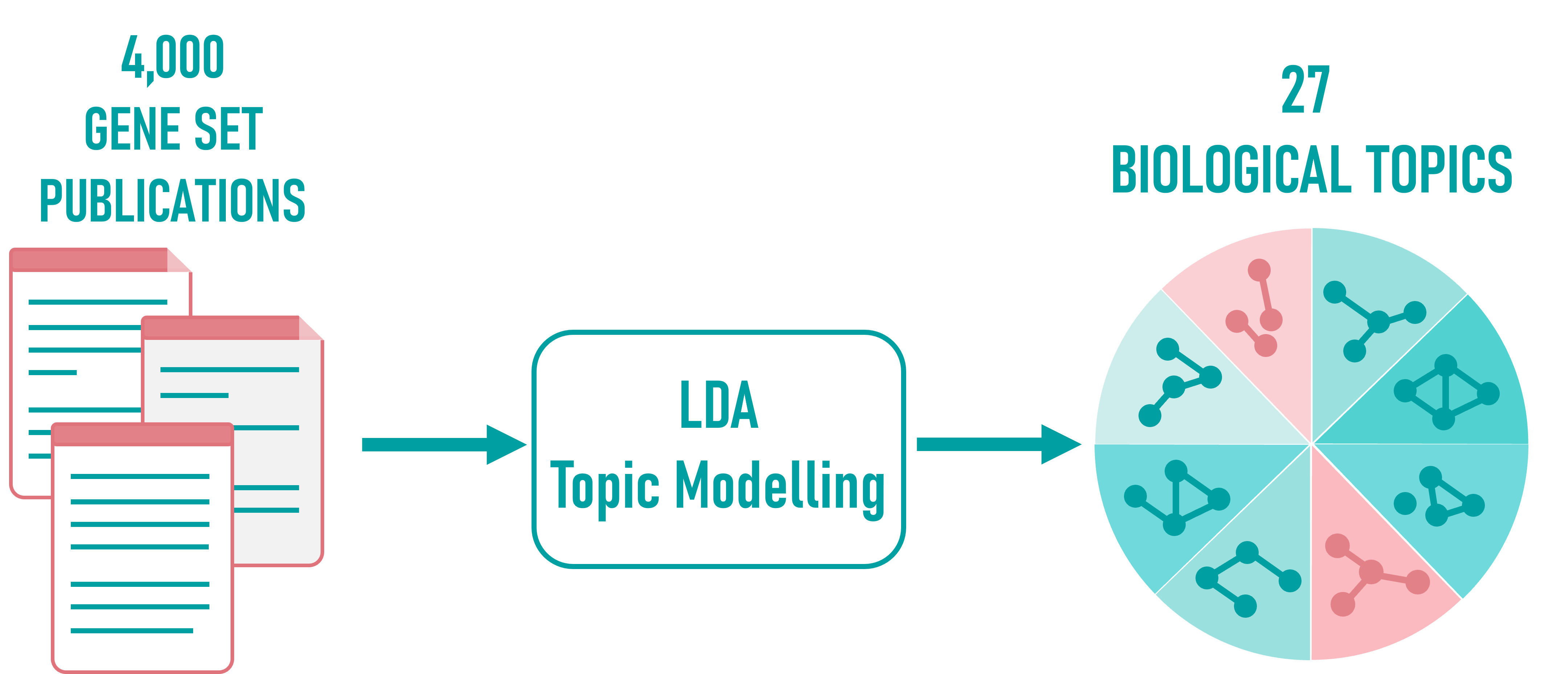 These clusters are derived by Latent Dirichlet Allocation (LDA) applied to MSigDB C2 gene sets (v2023.1.Hs).